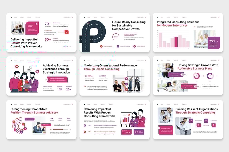 此模板非常适合企业家、初创公司、商业顾问、营销团队、代理机构、企业专业人士和教育工作者,他们需要制作一份看起来很专业的演示文稿,而无需花费数小时从头开始设计幻灯片。