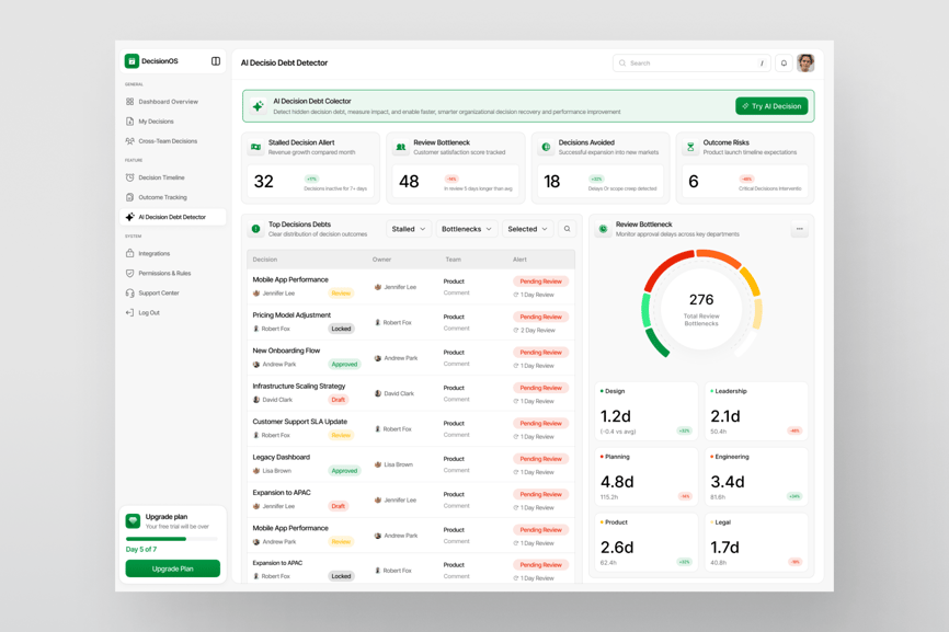 DecisionOS AI 决策债务检测器仪表板
