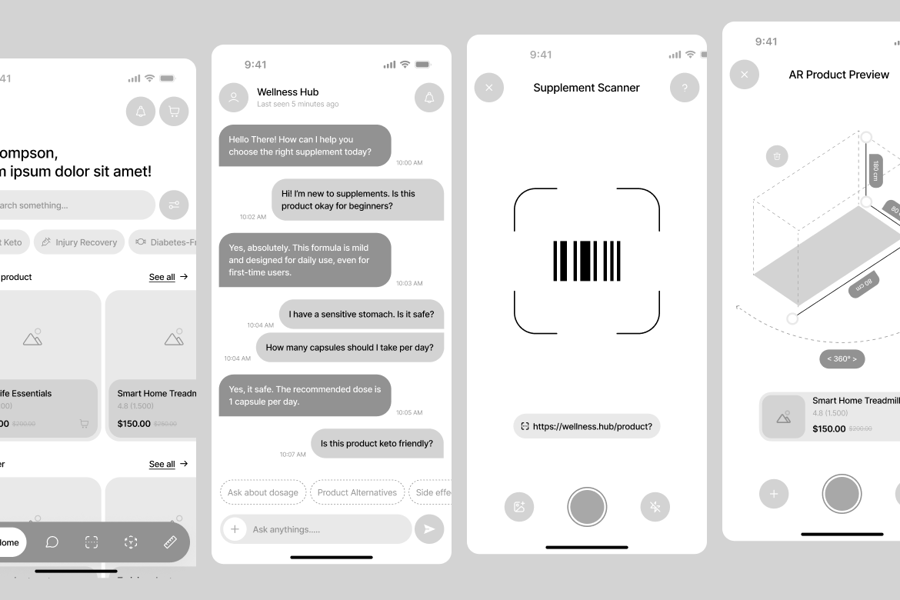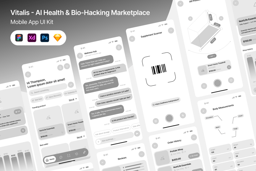 **Vitalis – 高品质线框图 AI 健康市场**