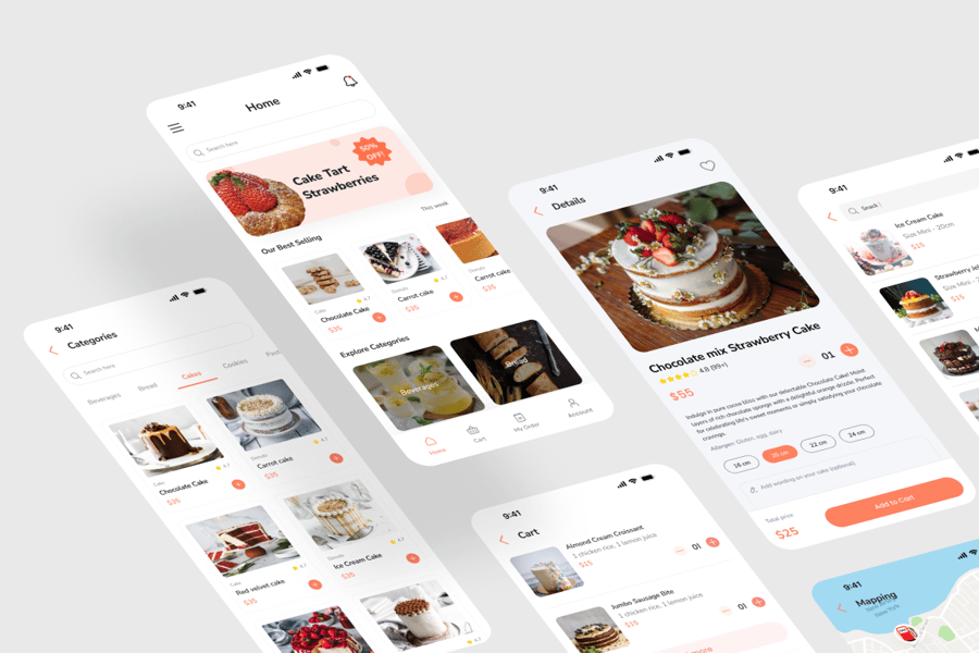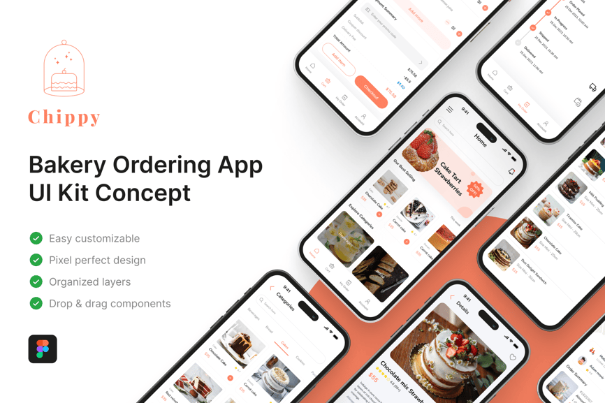 **注意:不包含模型图和照片** Chippy – 烘焙店订购应用 UI 套件