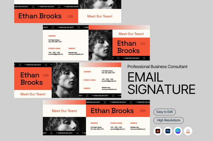 此电子邮件签名旨在完善咨询顾问和顾问专业人士的专业形象展示体系。它确保每次沟通都体现一致的市场形象和强大的公司形象。布局清晰地呈现联系方式,同时保持精致现代的视觉风格。这有助于在每次互动中营造出真诚可信的商务沟通氛围。作为更广泛营销策略的一部分,此签名将品牌一致性延伸至日常通信。简洁明了的呈现方式有助于咨询顾问在保持专业形象的同时,避免不必要的干扰。它非常适合重视清晰沟通的独立顾问、咨询公司和战略专业人士。通过巧妙的品牌宣传强化公司形象,此电子邮件签名有助于在所有专业接触点上打造一致的商业形象。
