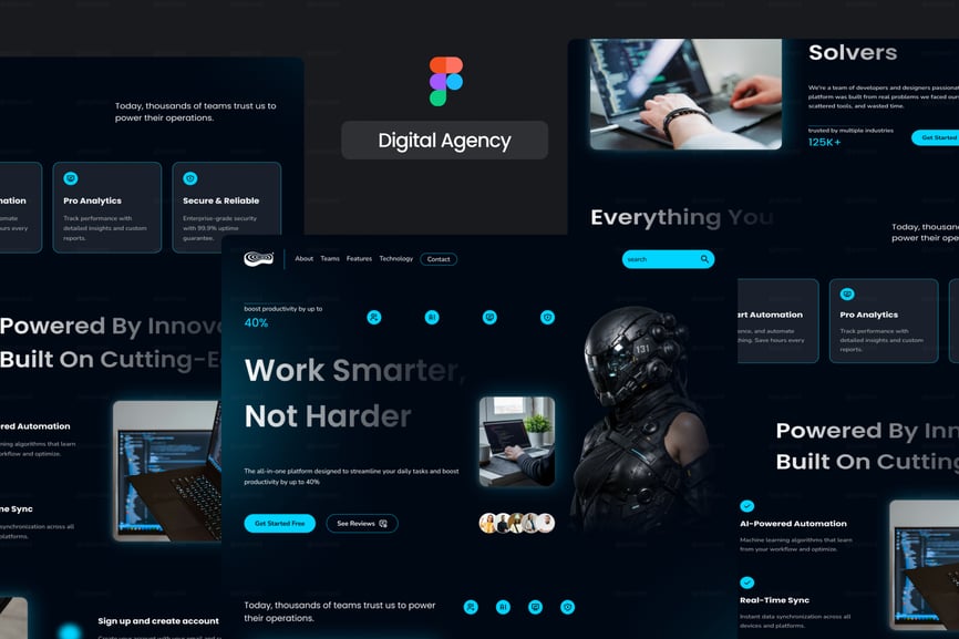 * **未来感十足的代理机构用户界面/用户体验** – 专业布局,视觉冲击力强。