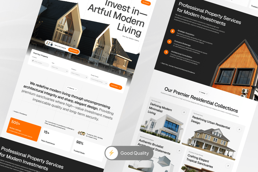 这款现代化的房地产网站旨在清晰有序地展示您的房源组合,突出房源信息、位置和关键特征。网站布局注重易用性和清晰度,方便访客轻松搜索、筛选和比较房源。无论您推广的是住宅还是商业地产,此设计都能确保流畅且引人入胜的用户体验。