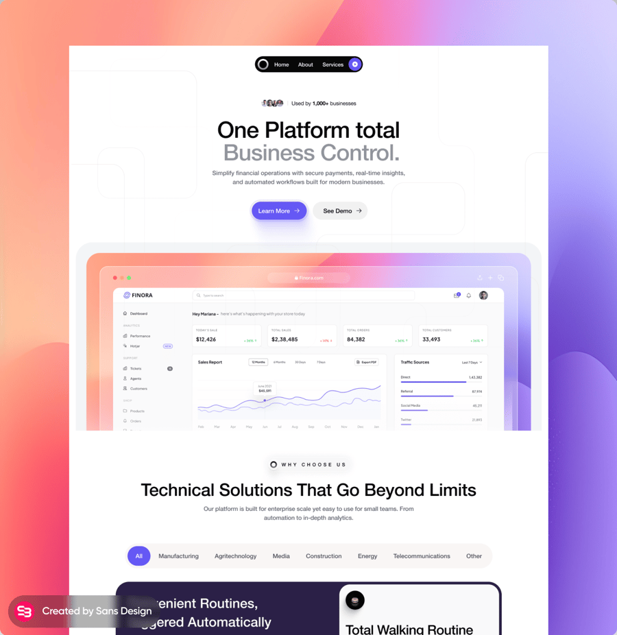 Finora – 企业管理平台 RS / 16 分前 网站模板 1 0 0 企业管理平台首页。风格优雅、现代、简洁。适用于企业、代理机构和公司。此文件包含一个首页模板。这是一个专业且现代的模板,文档齐全,易于定制。提供 Figma 文件格式。 请注意,图片中的模特照片仅供展示,并不包含在我们的商品中。