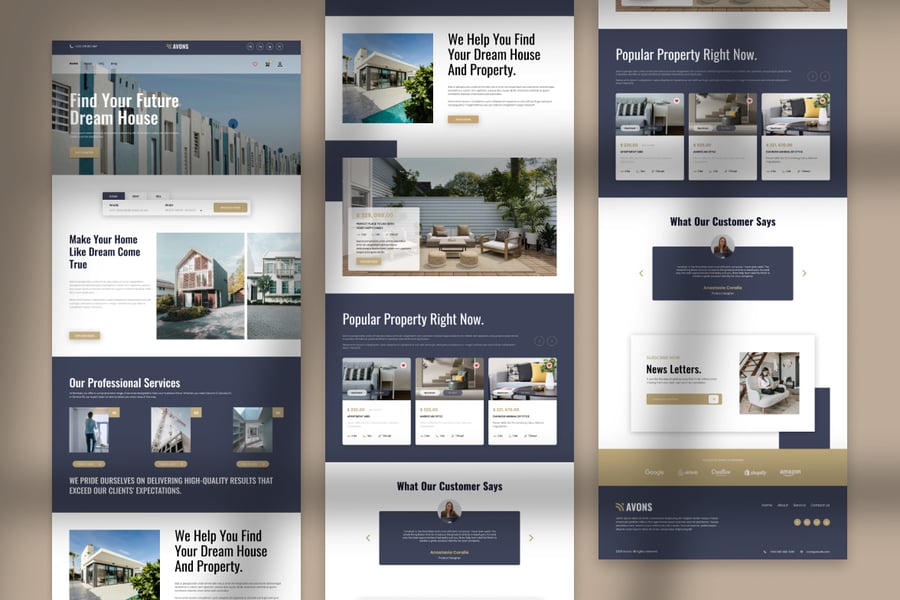 Avons – Business Property Landing Page Template 是一款现代化的用户界面模板,专为室内设计公司打造。我们的模板完全可定制,您可以根据项目需求,使用您自己的品牌内容、字体和颜色进行更新。