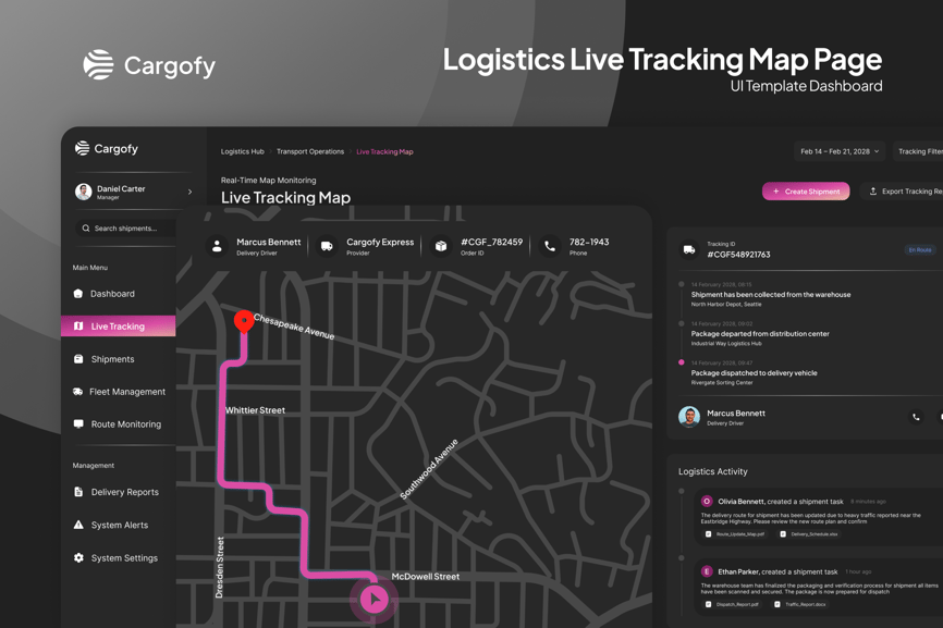 **Cargofy – 物流实时追踪地图页面**