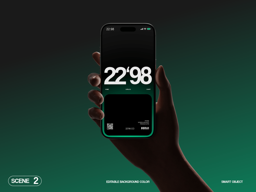 每个场景都经过精心设计,旨在完美展现您的屏幕设计——采用动态手持视角、可编辑背景和易于使用的智能对象,确保流畅的工作流程。对于希望以最小的努力获得高冲击力视觉效果的设计师来说,这是理想之选。