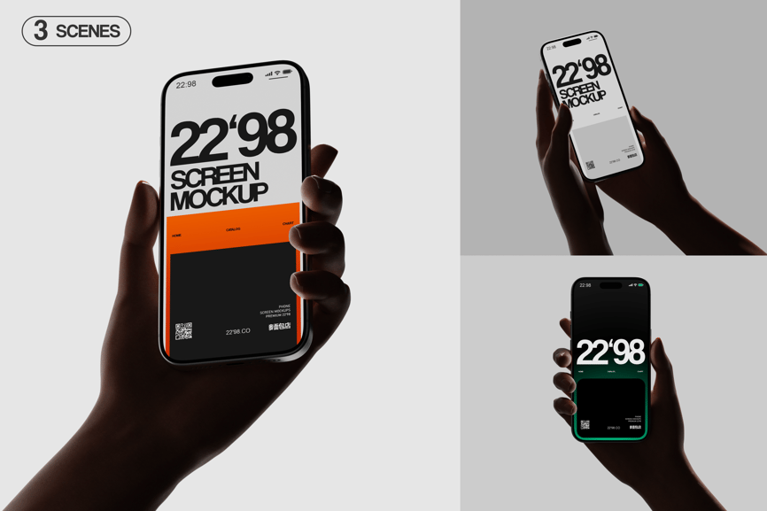 使用这款高品质手机屏幕模型,展示您的 UI/UX 设计、移动应用界面或品牌理念。这些模型采用逼真的光照、精细的手部姿势和简洁的工作室风格设计,呈现出现代而专业的展示效果,在任何作品集或市场中都能脱颖而出。