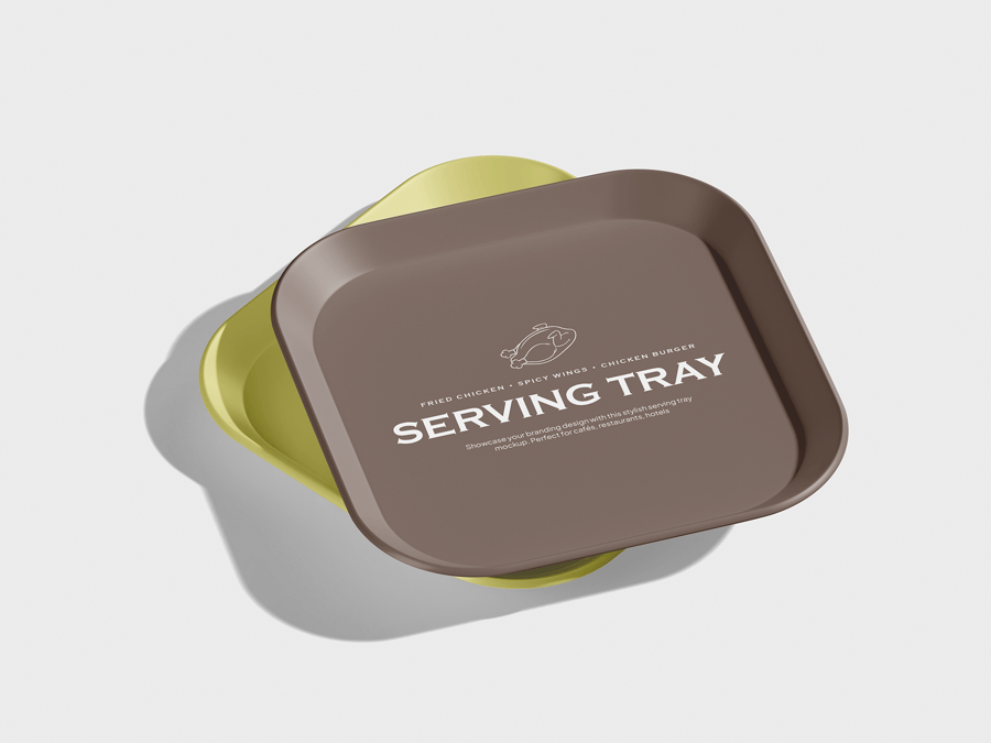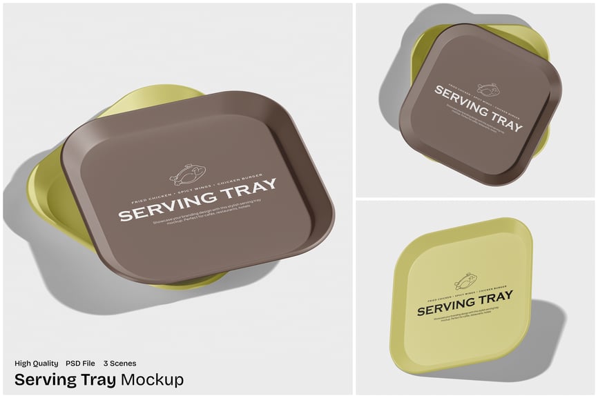 * 逼真的餐饮托盘展示效果
