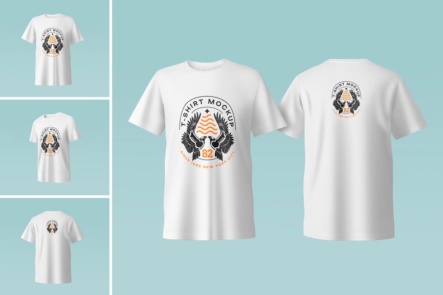 这款T恤样机非常适合展示服装图案、标志和时尚品牌理念。它拥有逼真的面料纹理和自然的褶皱,呈现出真实的视觉效果。使用这款T恤样机,您可以轻松打造简洁专业的服装展示。