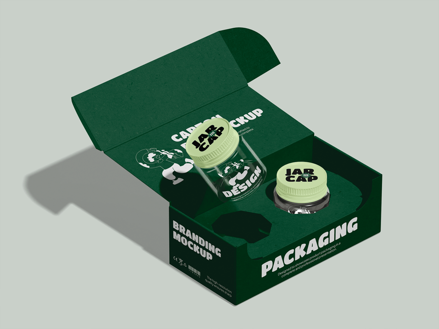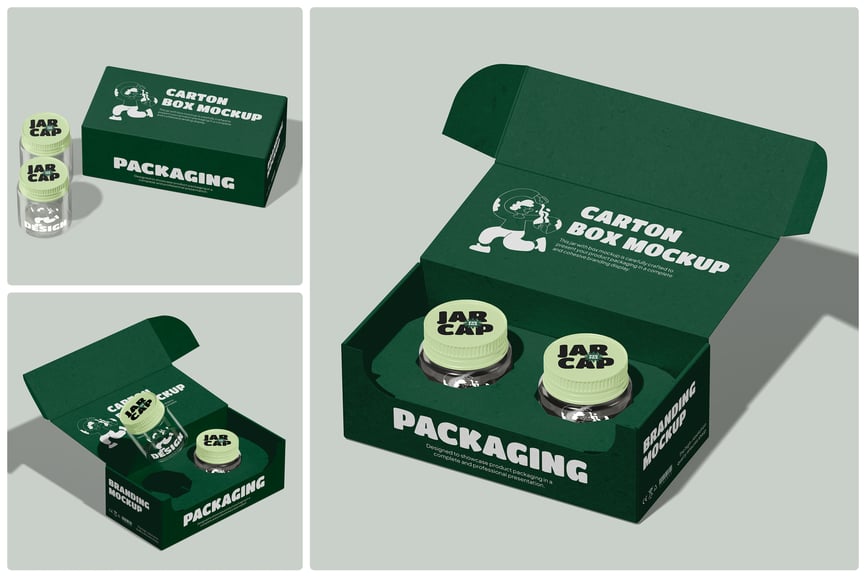罐子和盒子表面均可通过专用的智能对象图层独立编辑,让您可以完全掌控设计在多个包装组件上的呈现方式。逼真的阴影、材质质感和精准的光照效果,确保您作品的每一个细节都展现出深度和真实感。
