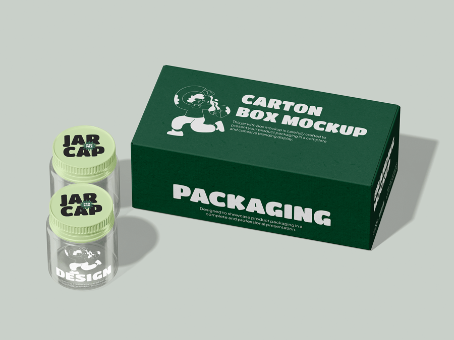 使用这款罐子和盒子样机,全面展示您的产品标签和包装设计,呈现完整统一的品牌形象。这款样机完美适用于食品、护肤品、保健品和特色商品,以简洁专业的构图展现罐子及其配套包装盒。