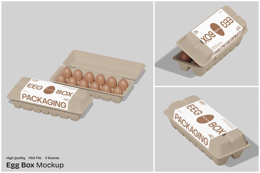 使用这款**鸡蛋盒样机**展示您的包装设计,它非常适合食品品牌、有机产品系列和零售包装概念。这款样机以简洁专业的细节突出了逼真的鸡蛋盒展示效果。