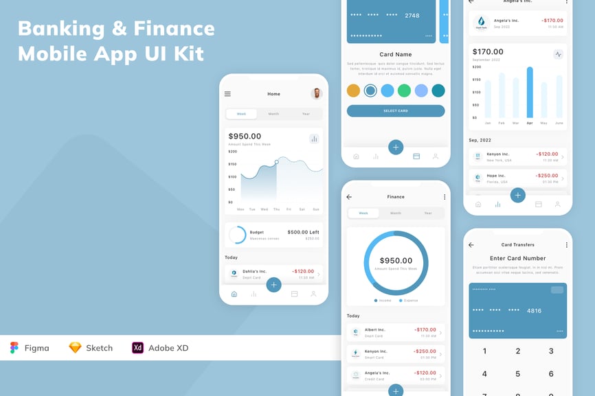 每个屏幕都可完全自定义,易于使用,并针对 Figma、Sketch 和 Adobe XD 进行了精心设计。