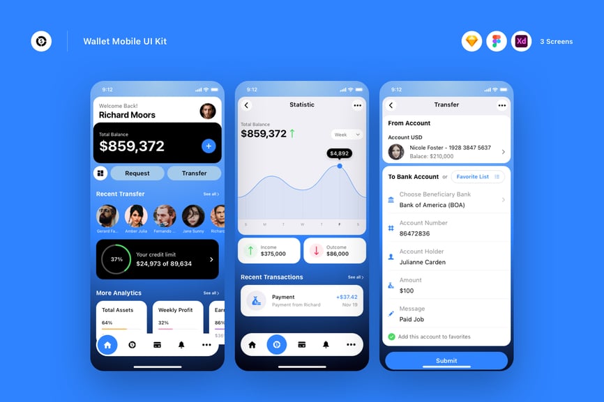 这款产品是一款完美的移动端 UI 套件,旨在加速您的应用设计流程。它包含所有 3 个屏幕,采用分层且结构清晰的元素。每个屏幕均可完全自定义,易于使用,并已在 Sketch、Figma 和 Adobe XD 中精心构建。此模板适用于 iOS 和 Android 系统。