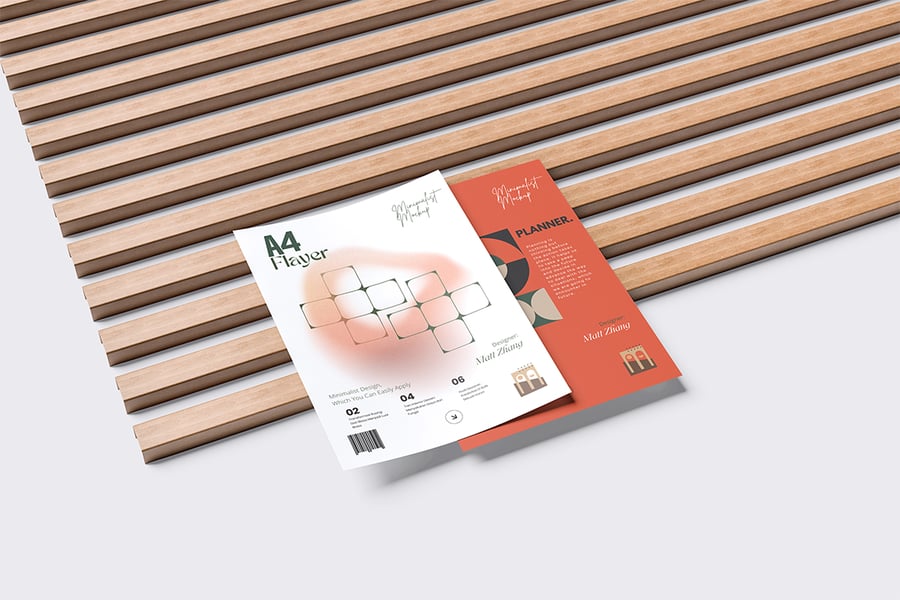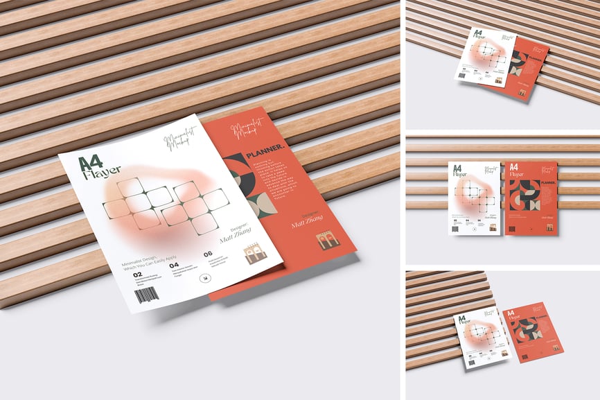 用这些精美的样机展示您的 A4 传单设计。此样机包含 4 个元素,并提供分层清晰的 PSD 文件。此外,此样机还采用了智能对象功能,这意味着您只需几秒钟即可轻松快捷地将当前设计替换为您自己的设计。