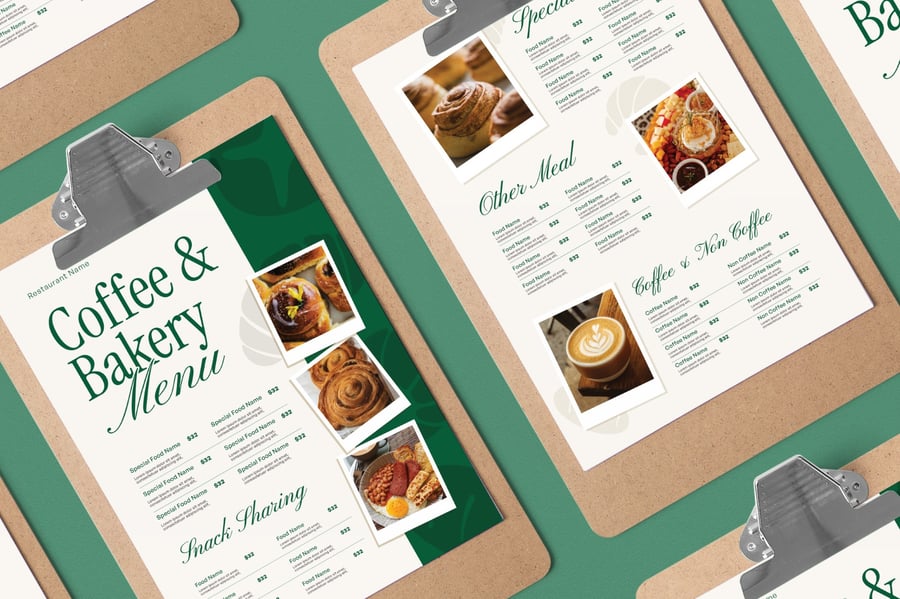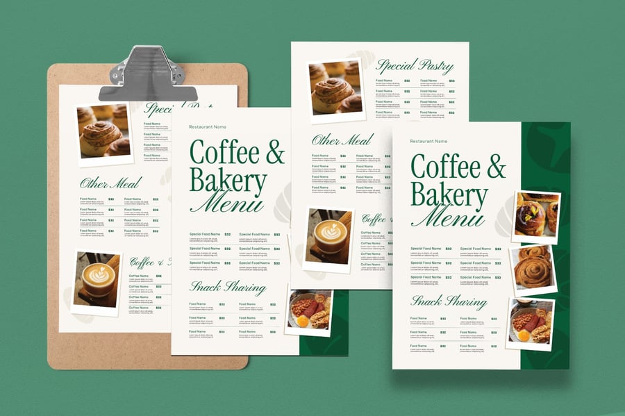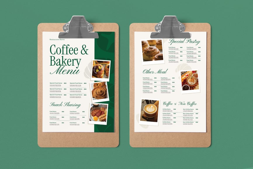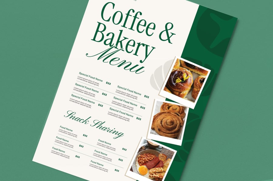 用一份温馨诱人的烘焙食品菜单来展示您的美味佳肴,菜单设计清晰、诱人,旨在展示糕点、蛋糕和甜点。