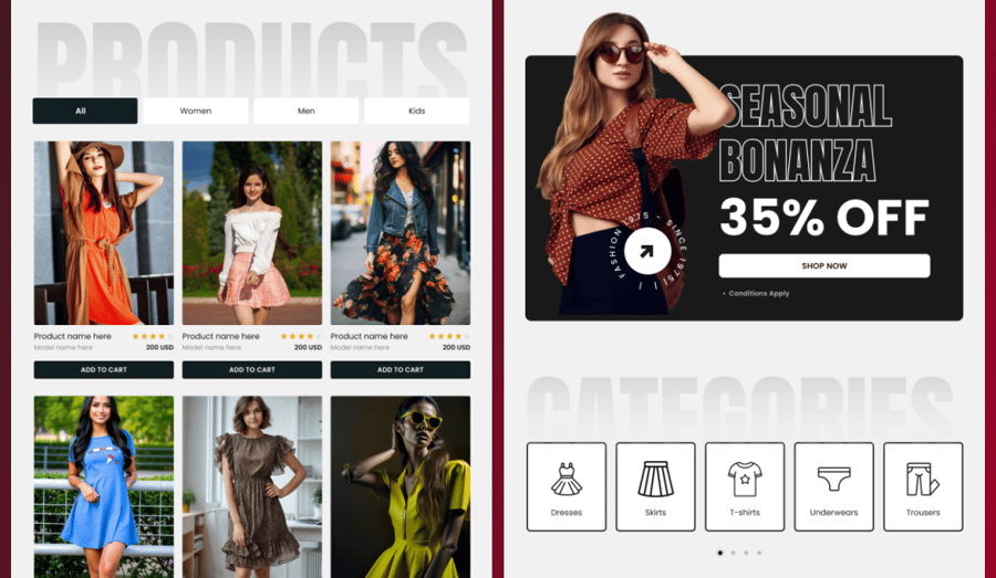 **时尚商店电商网站首页用户界面**