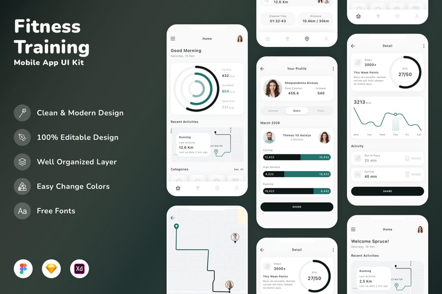 健身训练移动应用 UI 套件