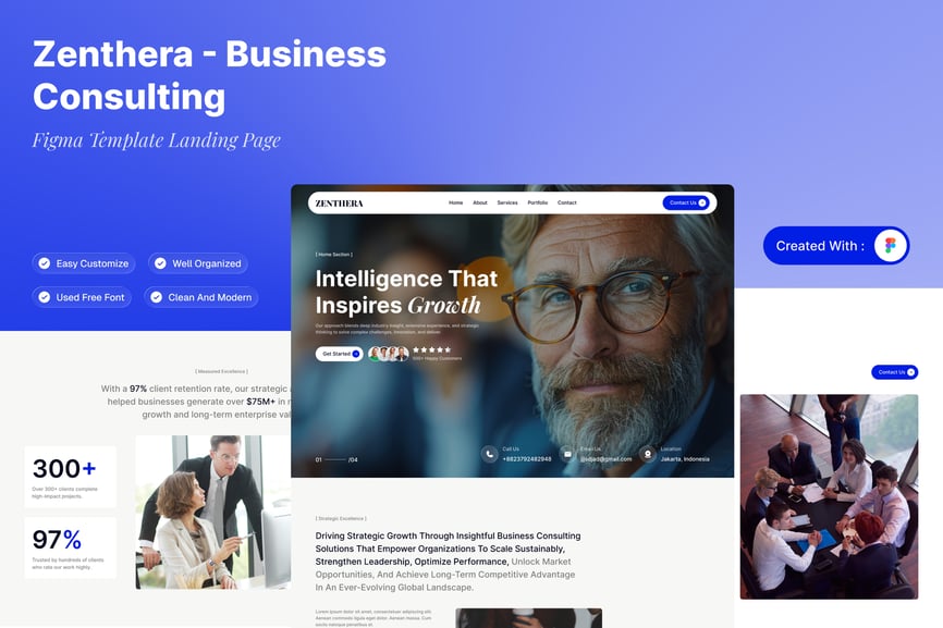 Zenthera – 商业咨询落地页是一个现代而专业的 Figma 模板,专为咨询公司、商业顾问、财务顾问和企业机构而设计。