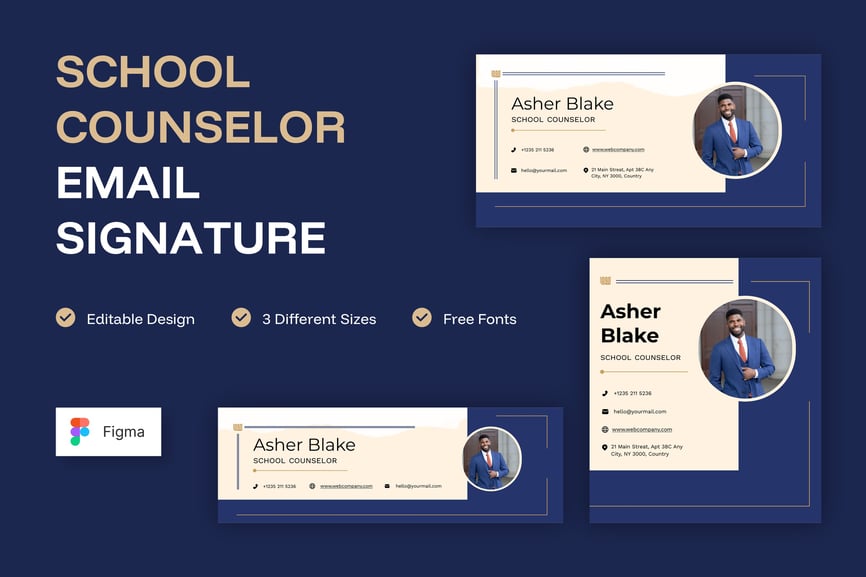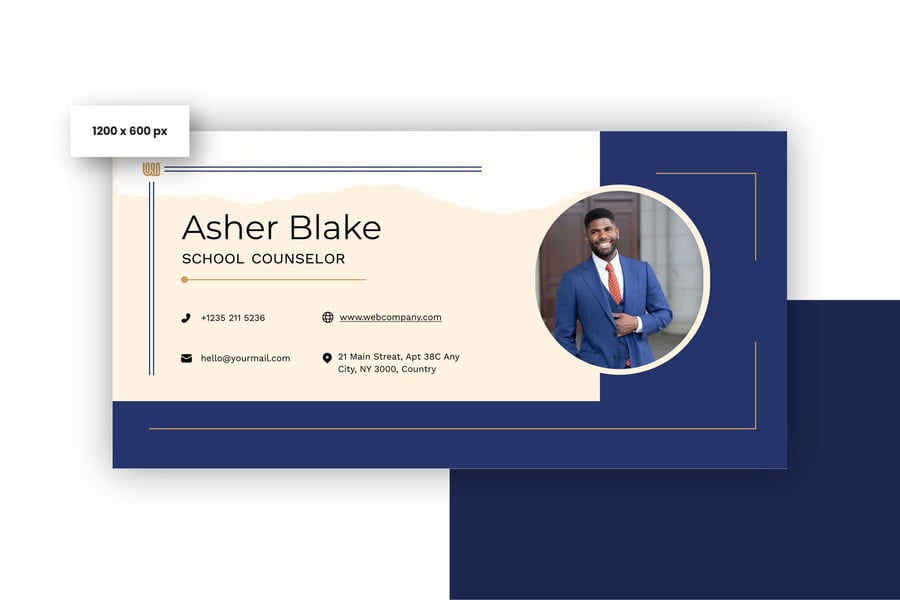 简洁专业的电子邮件签名设计,适用于商务或个人用途。一款设计提供三种不同尺寸,满足您的多种需求。现代、优雅、简洁的设计风格,令您的电子邮件签名更显专业。