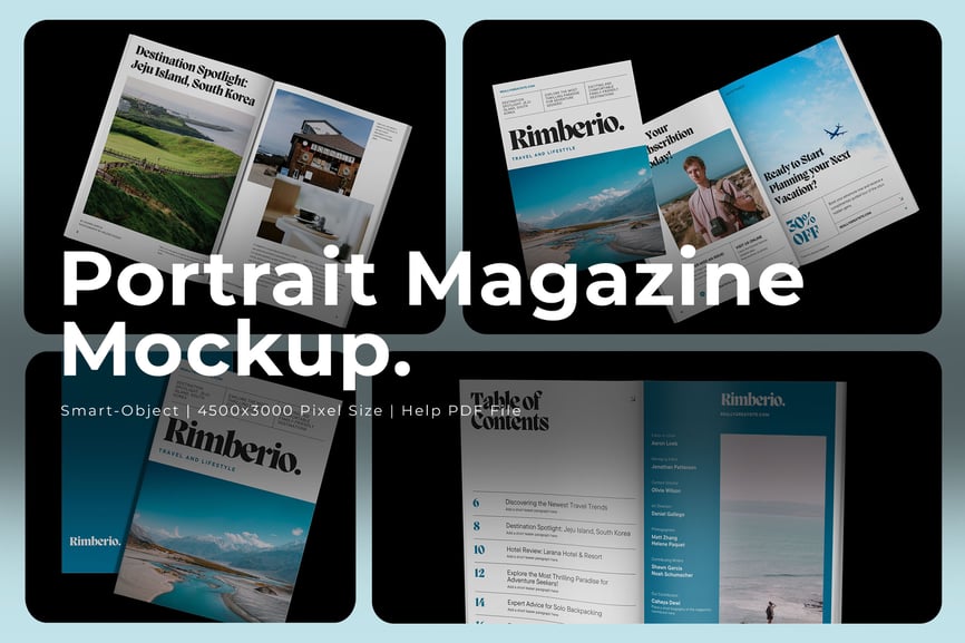 使用这套**竖版杂志样机**,清晰专业地展示您的编辑设计。这些模板旨在赋予您的版面精致逼真的外观,非常适合用于作品集展示、客户演示或社交媒体预览。