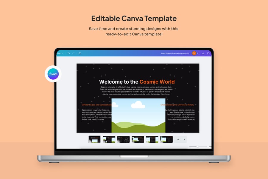 这幅信息图非常适合用于需要信息丰富且引人入胜的视觉效果的教育内容、科学出版物和数字学习材料。无论是教师、学术机构还是教育科技平台,这种设计都能以易于理解且极具视觉冲击力的方式呈现宇宙探索。