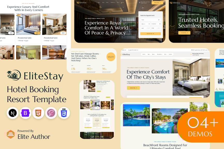 EliteStay – Next.js – 多用途酒店预订模板(含 TypeScript)