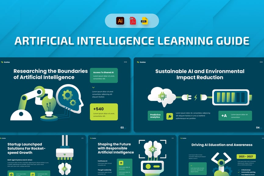 这款专为现代科技教育设计的AI学习指南信息图矢量模板,旨在支持结构化学习。它采用未来感十足的企业风格,将AI概念、技能等级和学习路径清晰地组织成可视化的模块。简洁的布局、可编辑的矢量元素以及充满科技感的视觉效果,帮助学习者以逻辑清晰且引人入胜的方式理解AI的基础知识、工具和应用。