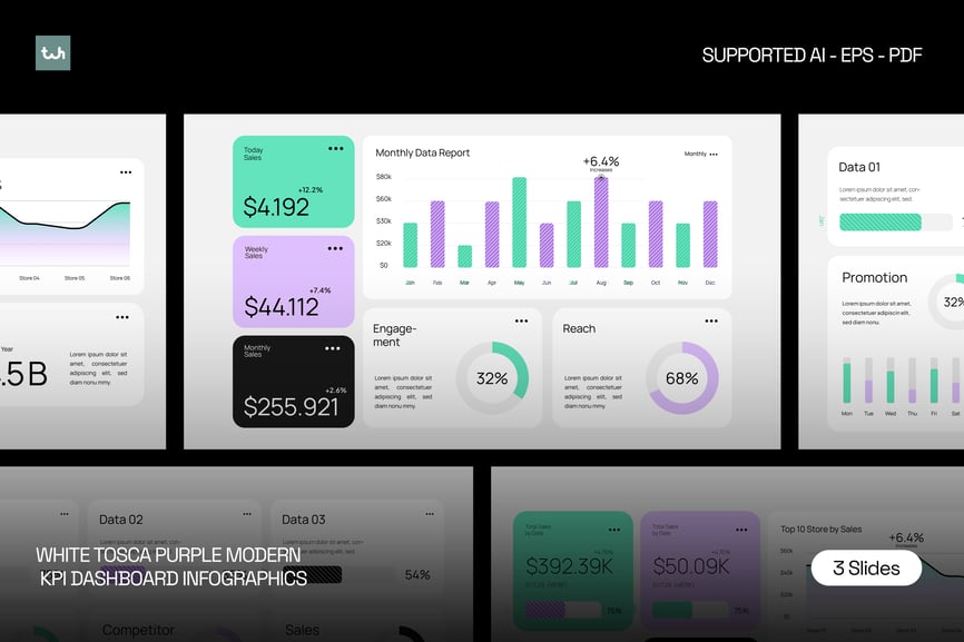 白色托斯卡紫色现代KPI仪表盘004