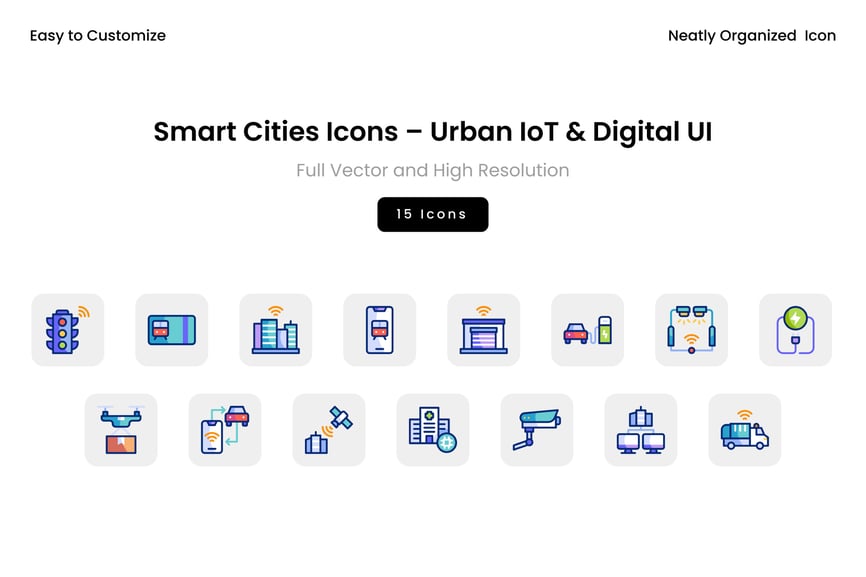 智慧城市图标 – 城市物联网与数字用户界面