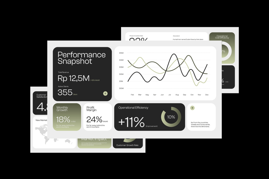 白色绿色极简渐变KPI仪表盘001