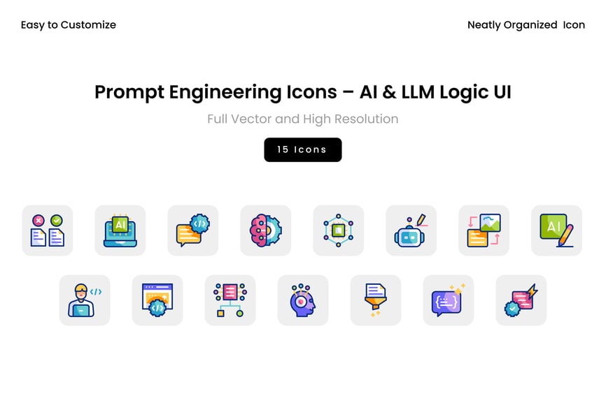 提示工程图标 – AI 和 LLM 逻辑 UI