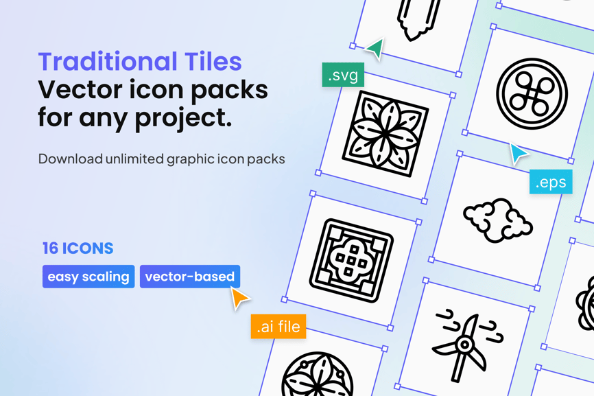 – 图标总数:16 个传统瓷砖图标(几何、花卉、马赛克、边框、装饰)