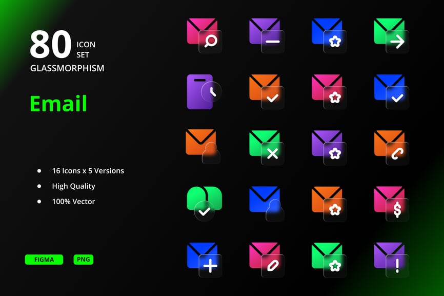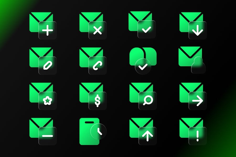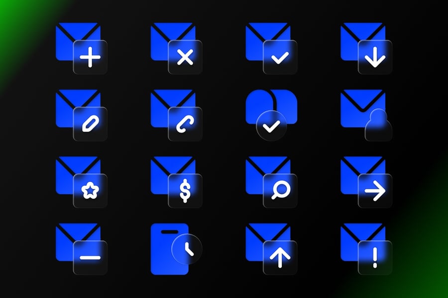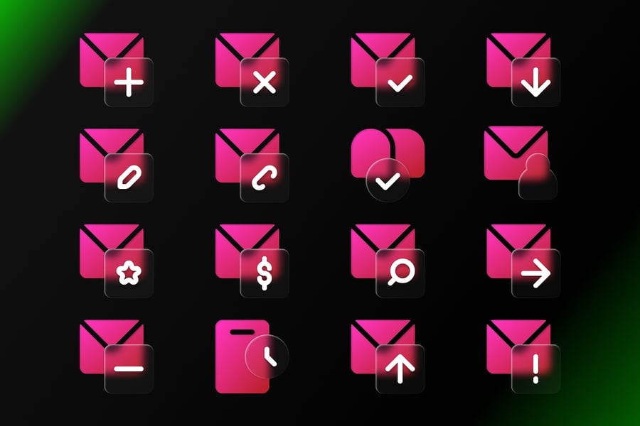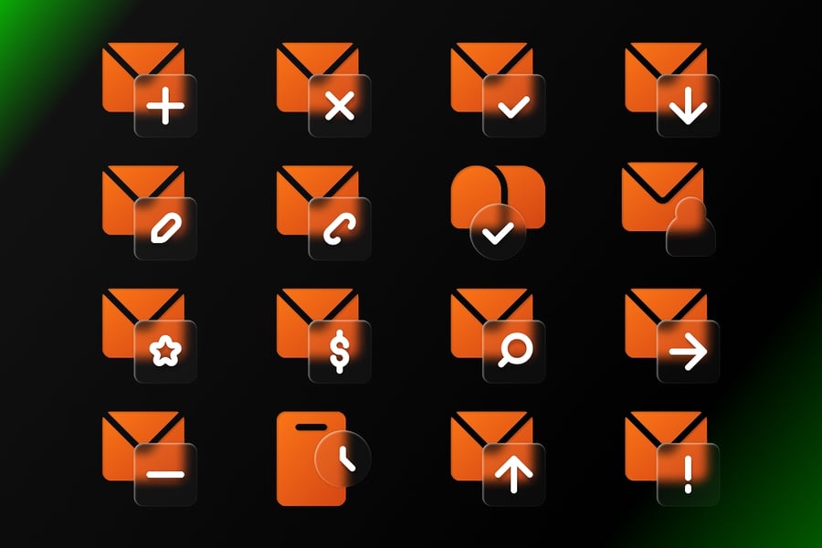 **玻璃变形邮件图标** 是一套采用充满活力的玻璃变形风格设计的现代邮件图标集,具有闪亮的渐变效果、柔和的透明度和未来主义的 UI 美学。非常适合用于即时通讯应用、通信仪表盘、通知系统和现代数字界面设计。