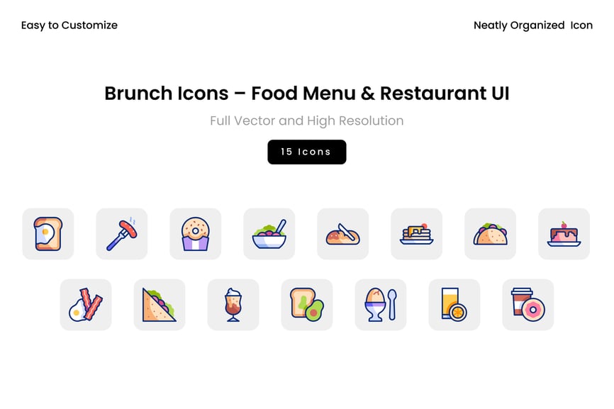 早午餐图标 – 食品菜单和餐厅用户界面