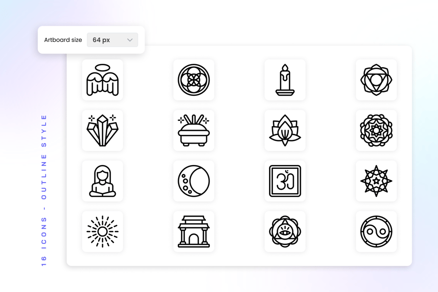 – 图标总数:16 个灵性图标(莲花、曼陀罗、冥想姿势、蜡烛、脉轮、念珠、神圣几何)
