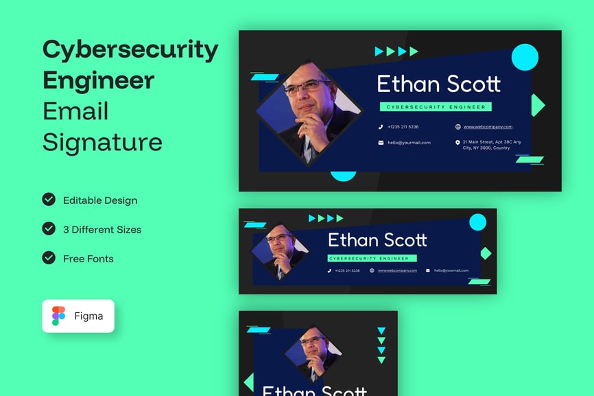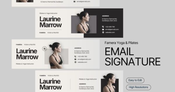 简洁专业的电子邮件签名设计,适用于商务或个人用途。一款设计提供三种不同尺寸,满足您的多种需求。现代、优雅、简洁的设计风格,令您的电子邮件签名更显专业。
