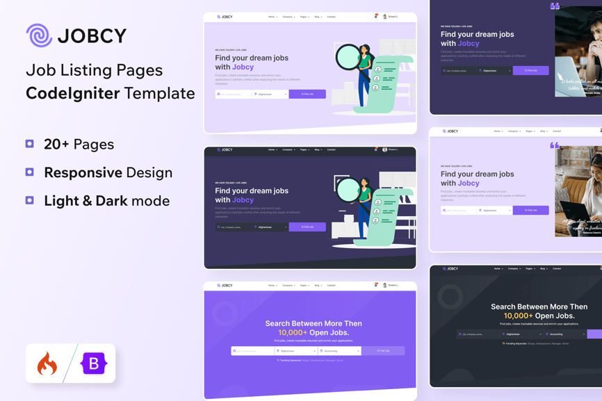 Jobcy 是一款基于 CodeIgniter 4 的现代化求职网站模板,旨在连接求职者和招聘雇主。该模板设计简洁,可帮助您轻松搭建网站,用于发布职位空缺、寻找合适的员工以及接收雇主的简历。它非常适合以下类型的项目:求职、人才目录门户、简历市场、招聘机构等。