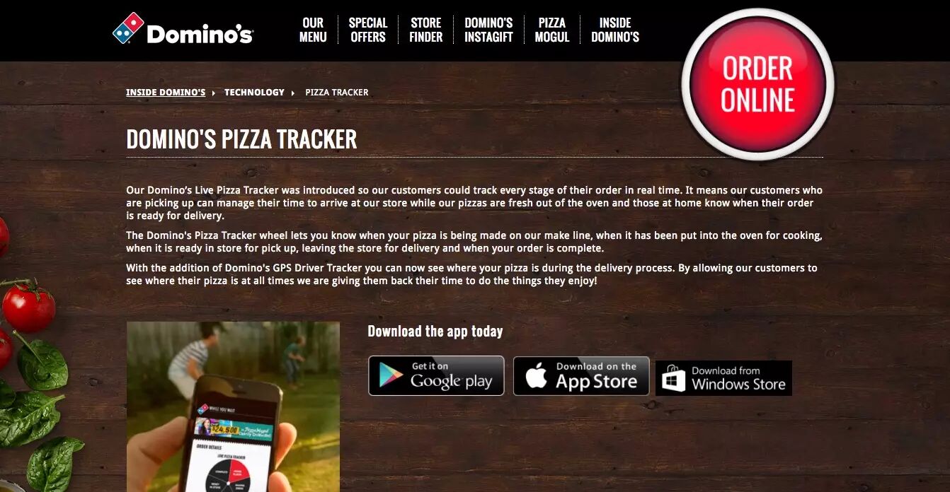 Domino’s是如何迎头赶上的呢?秘诀是现代,移动,基于云,数据丰富的技术。“我认为这得益于Domino’s充分利用在线和移动功能,” Stephen Anderson(Miller Tabak的餐饮业分析师)说到。Pizza Hut一直在构建实体店,但Domino’s却转战线上,不惜一切全面科技化,它设计了一款非常棒的app和在线下单系统。Pizza Tracker这个app让用户在等待的时候也乐趣无穷,它深受用户喜爱,一半以上的订单都是在线的。