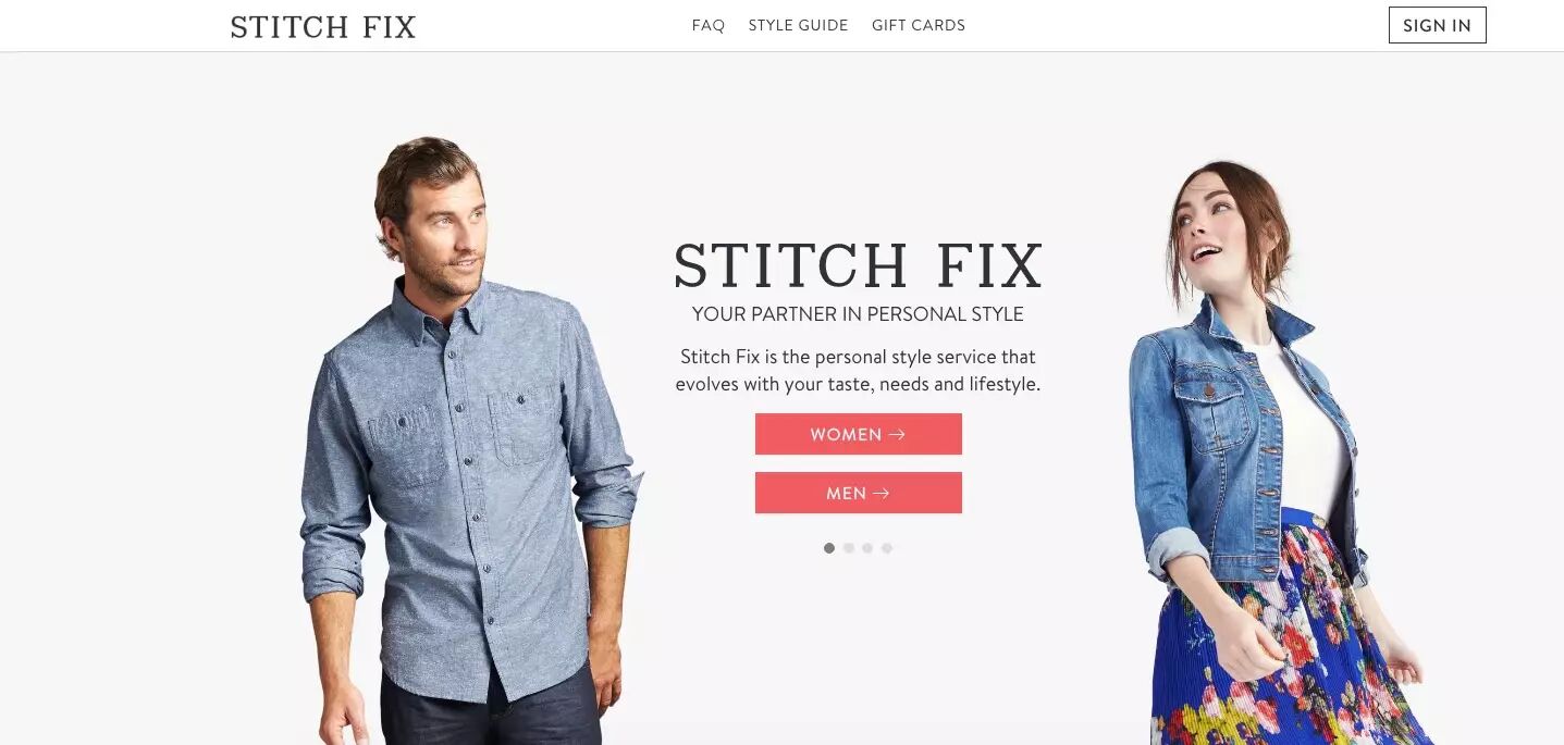 在注册Stitch Fix时,新客户需要做一份关于时尚风格的问卷调查,此外,网站会请求链接到用户的社交媒体资料,获得用户的真实穿衣风格。网站根据用户的喜好缩小推荐的范围。这种定制用户体验是双赢的,用户收到称心如意的衣服,同时Stitch Fix获得更多的收益。