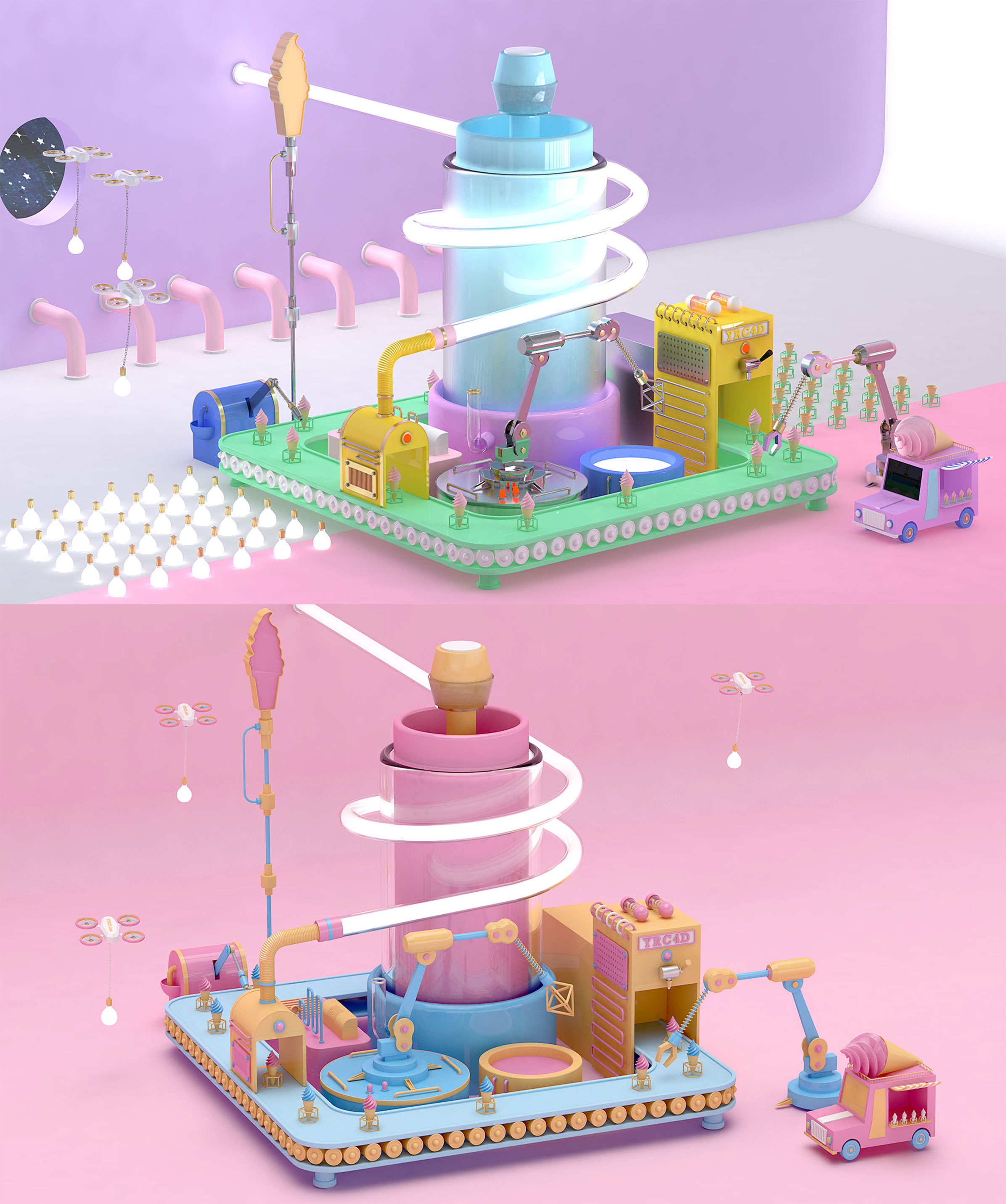 新手通过基础的几何建模与一些简单技巧可以快速制做出以下场景