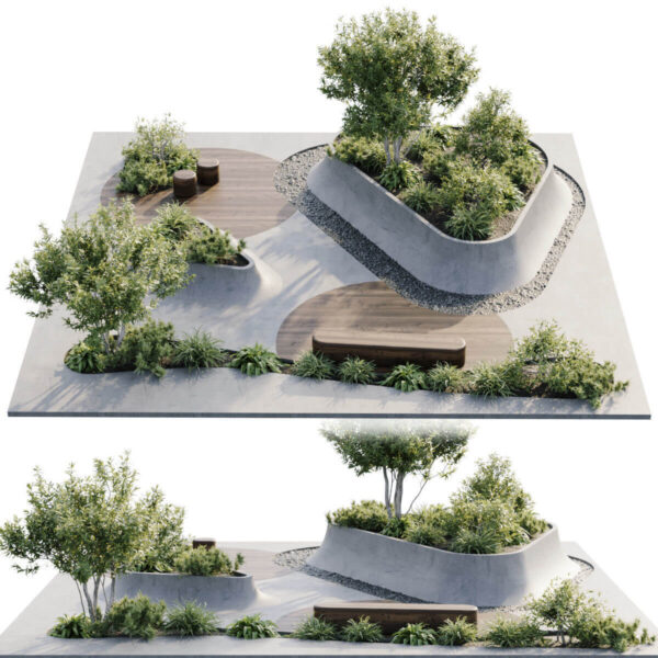 包含绿植 长凳 鹅卵石的花园景观3D模型(FBX,MAX)