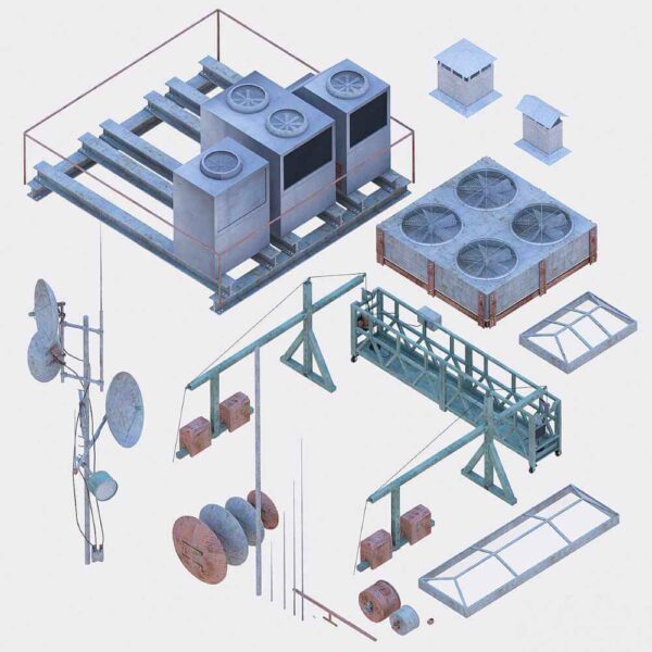 空调室外机 通风管道 天线等屋顶设备组合low poly 3D模型(OBJ,FBX,MAX)