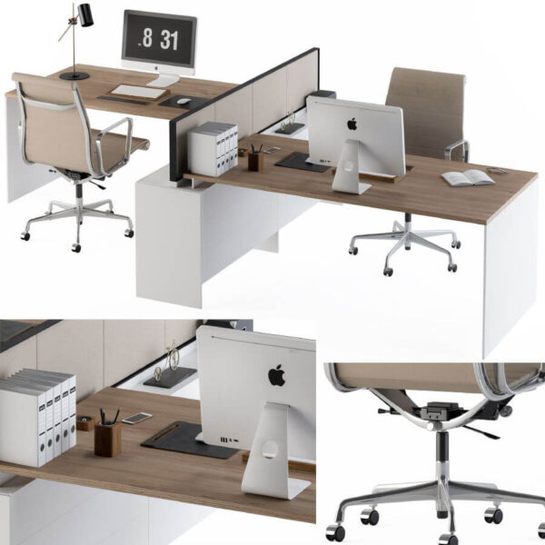 二人座员工办公桌椅 办公室家具3D模型(OBJ,MAX)