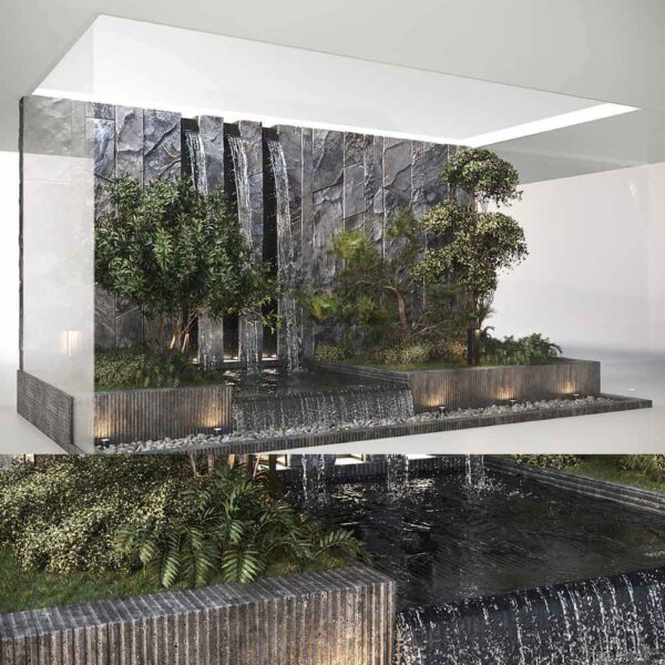 包含绿植 瀑布 鹅卵石的室内组合景观 花园景观3D模型(OBJ,MAX)