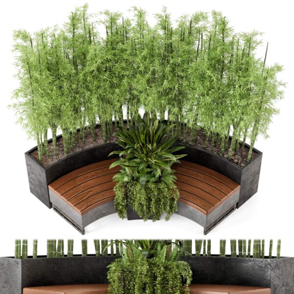 带长凳的竹子植物花坛 户外花坛3D模型(OBJ,MAX)