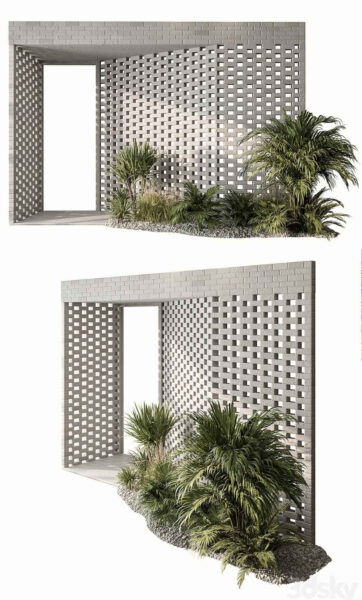 带绿植的砖石风格现代建筑入户门3D模型(OBJ,MAX)