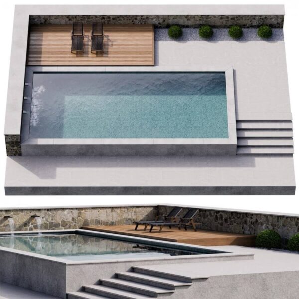 包含绿植和躺椅的室外游泳池3D模型(OBJ,FBX,MAX)