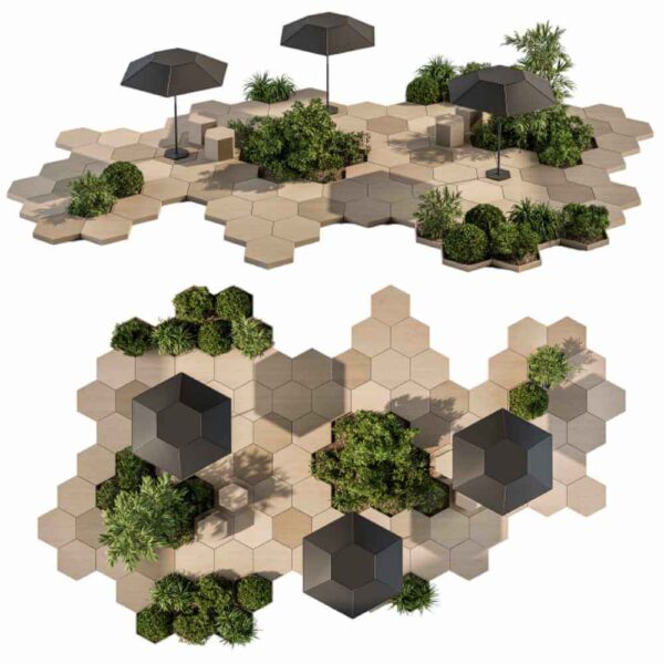 包含绿植和遮阳伞的组合景观 花园景观3D模型(OBJ,MAX)